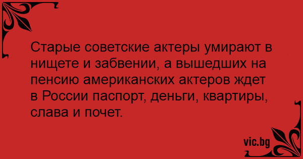 Старые советские актеры умирают в нищете и забвении, а вышедших на пенсию американских актеров ждет в России паспорт, деньги, квартиры, слава и почет.