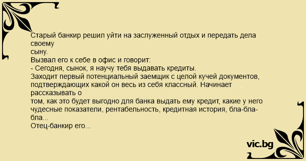 - Сегодня, сынок, я научу тебя выдавать кредиты.