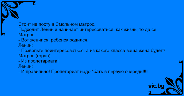 - И правильно! Пролетариат надо eбatь в первую очередь!!!!