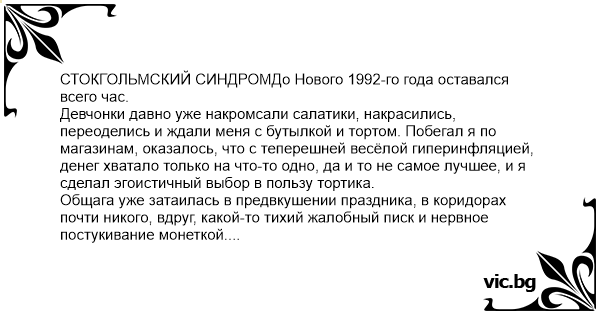 СТОКГОЛЬМСКИЙ СИНДРОМДо Нового 1992-го года оставался всего час.