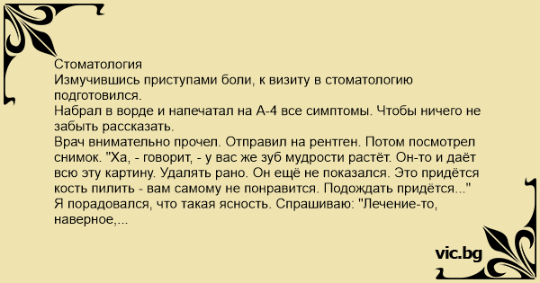 Стоматология Измучившись приступами боли, к визиту в стоматологию подготовился.