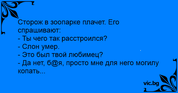 Сторож в зоопарке плачет. Его спрашивают: