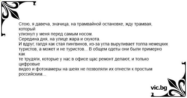 Стою, я давеча, значица, на трамвайной остановке, жду трамвая, который улизнул у меня перед самым носом.