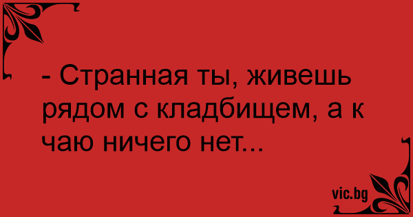 - Странная ты, живешь рядом с кладбищем, а к чаю ничего нет...