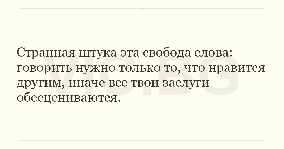 Странная штука эта свобода слова: говорить нужно только то, что нравится другим, иначе все твои заслуги обесцениваются.