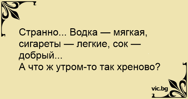 Странно... Водка — мягкая, сигареты — легкие, cok — добрый...<br />А что ж утром-то так хреново?