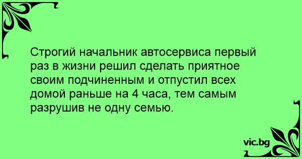 Строгий начальник автосервиса первый раз в жизни решил сделать приятное своим подчиненным и отпустил всех домой раньше на 4 часа, тем самым разрушив не одну семью.