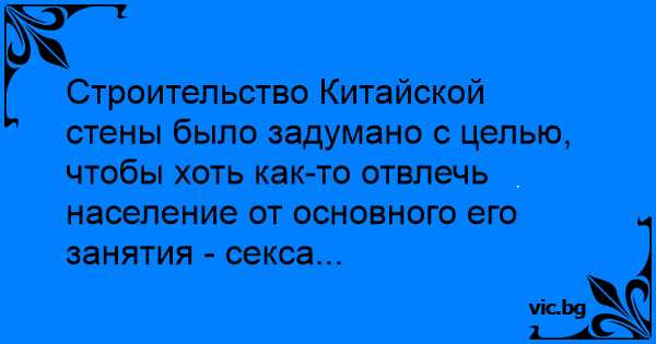 Строительство Китайской стены было задумано с целью, чтобы хоть как-то отвлечь население от основного его занятия - cekca...