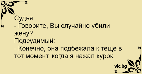 - Конечно, она подбежала к теще в тот момент, когда я нажал курок.
