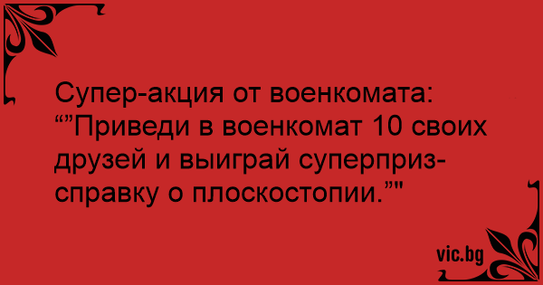“”Приведи в военкомат 10 своих друзей и выиграй суперприз-справку о плоскостопии.”"