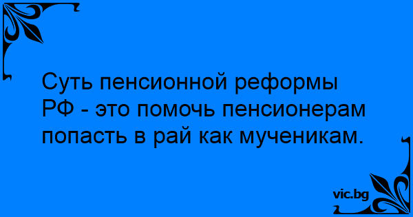 Суть пенсионной реформы РФ - это помочь пенсионерам попасть в рай как мученикам.<br />