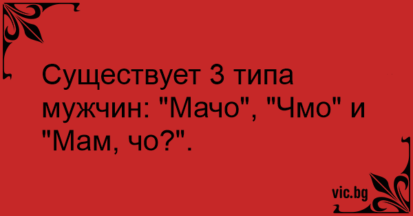 Существует 3 типа мужчин: "Мачо", "Чмо" и "Мам, чо?".