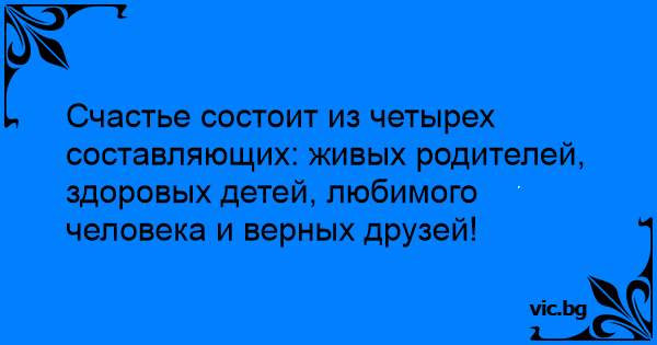 Счастье состоит из четырех составляющих: живых родителей, здоровых детей, любимого человека и верных друзей!