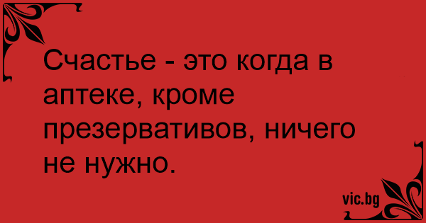 Счастье - это когда в аптеке, кроме презервативов, ничего не нужно.