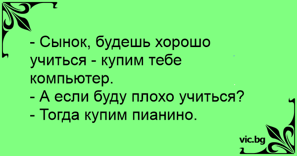 - Сынок, будешь хорошо учиться - купим тебе компьютер.