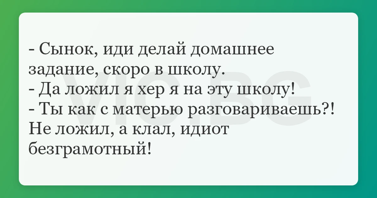 - Ты как с матерью разговариваешь?! Не ложил, а клал, идиot безграмотный!