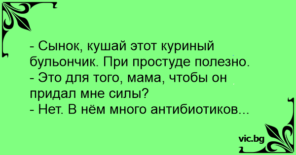 - Сине, хапни си пилешка, супичка, много е полезна при простуда.