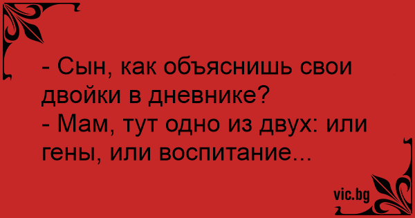 - Иванчо, как ще обясниш тая двойка? - Ами едно от двете е, или гените или възпитанието