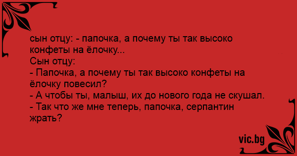 сын отцу: - папочка, а почему ты так высоко конфеты на ёлочку...