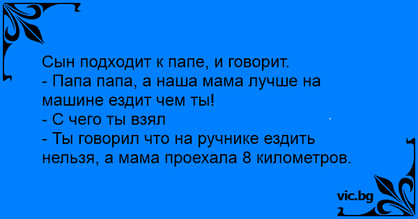 - Папа папа, а наша мама лучше на машине ездит чем ты!