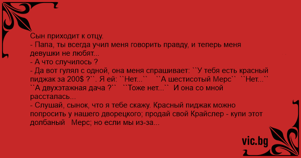 - Папа, ты всегда учил меня говорить правду, и теперь меня девушки не любят...