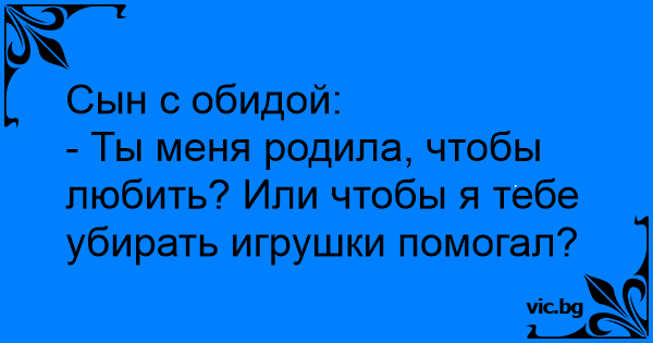 - Ты меня родила, чтобы любить? Или чтобы я тебе убирать игрушки помогал?