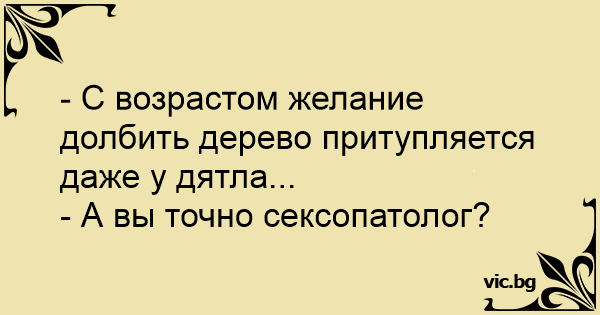 - С возрастом желание долбить дерево притупляется даже у дятла...