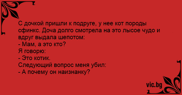 С дочкой пришли к подруге, у нее кот породы сфинкс. Доча долго смотрела на это лысое чудо и вдруг выдала шепотом: