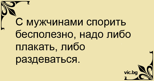С мужчинами спорить бесполезно, надо либо плакать, либо раздеваться.