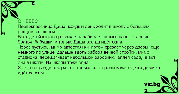 С НЕБЕС Первоклассница Даша, каждый день ходит в школу с большим ранцем за спиной.