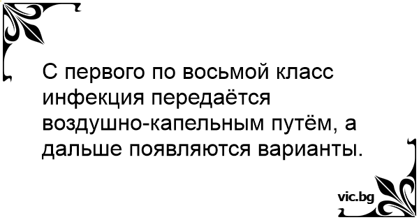 С первого по восьмой класс инфекция передаётся воздушно-капельным путём, а дальше появляются варианты.