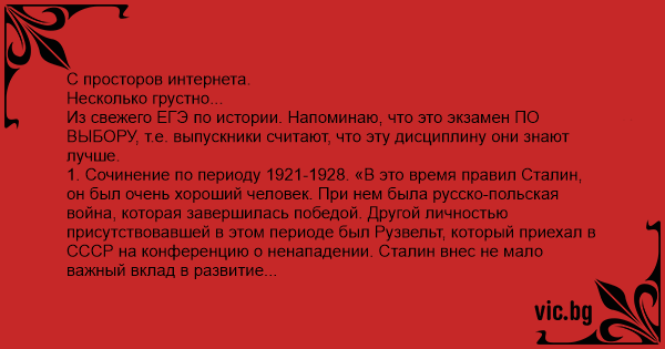 Из свежего ЕГЭ по истории. Напоминаю, что это экзамен ПО ВЫБОРУ, т.е. выпускники считают, что эту дисциплину они знают лучше.
