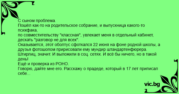 Вот такая история, может не очень смешная, но сына из школы не отчислили.
