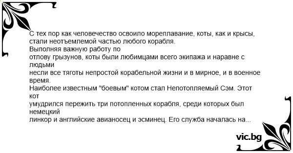 Наиболее известным "боевым" котом стал Непотопляемый Сэм. Этот кот