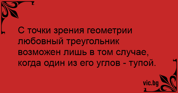 С точки зрения геометрии любовный треугольник возможен лишь в том случае, когда один из его углов - тупой.