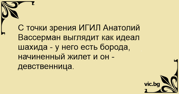 С точки зрения ИГИЛ Анатолий Вассерман выглядит как идеал шахида - у него есть борода, начиненный жилет и он - девственница.