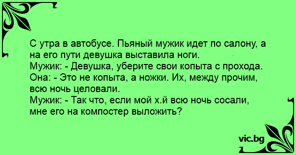 Мужик: - Так что, если мой x.й всю ночь сосали, мне его на компостер выложить?