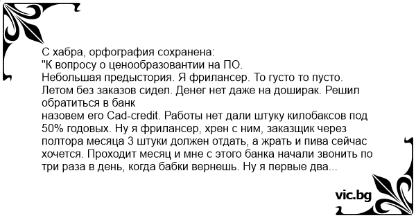 Летом без заказов сидел. Денег нет даже на доширак. Решил обратиться в банк