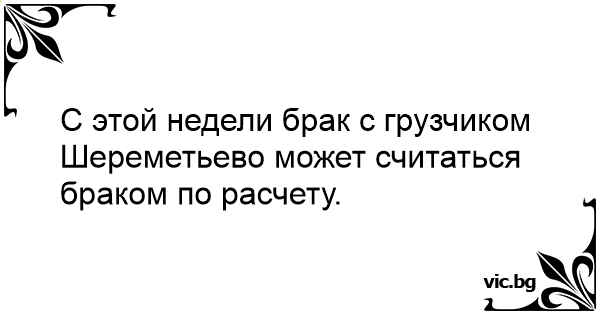 С этой недели брак с грузчиком Шереметьево может считаться браком по расчету.