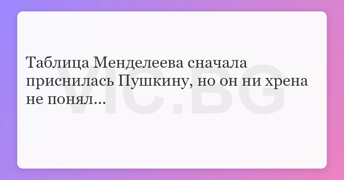 Таблица Менделеева сначала приснилась Пушкину, но он ни хpeнa не понял...<br />