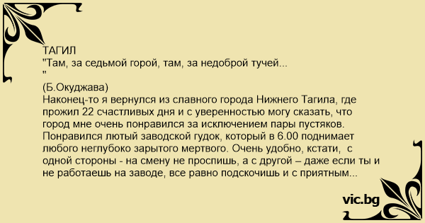 ТАГИЛ "Там, за седьмой горой, там, за недоброй тучей...