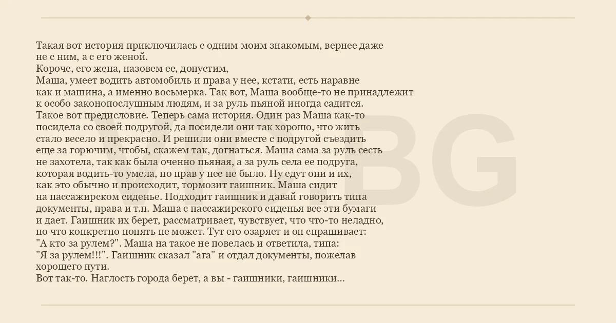 "А кто за рулем?". Маша на такое не повелась и ответила, типа: