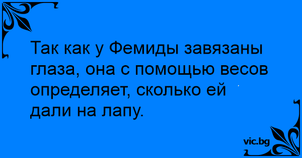 Так как у Фемиды завязаны глаза, она с помощью весов определяет, сколько ей дали на лапу.