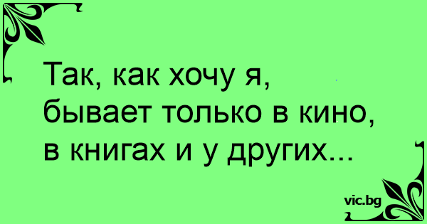 Так, как хочу я, бывает только в кино, в книгах и у других...