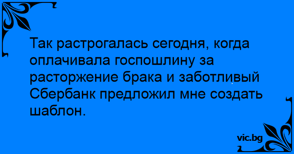 Так растрогалась сегодня, когда оплачивала госпошлину за расторжение брака и заботливый Сбербанк предложил мне создать шаблон.