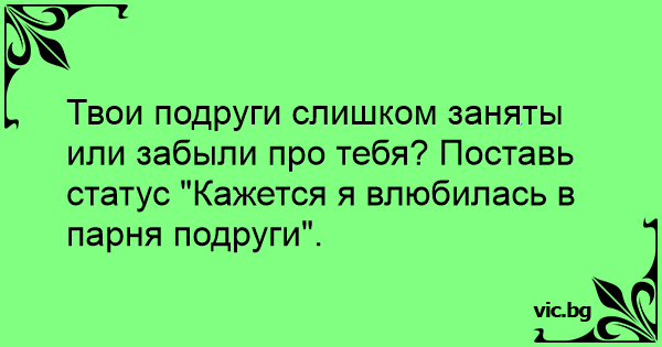 Твои подруги слишком заняты или забыли про тебя? Поставь статус "Кажется я влюбилась в парня подруги".