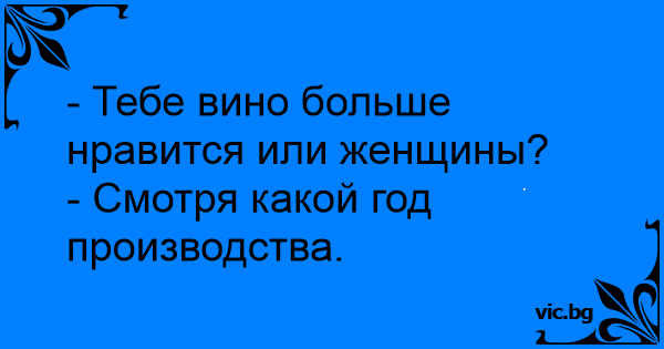 — Що ти більше любиш – вино чи жінок? — Це залежить від року виготовлення.