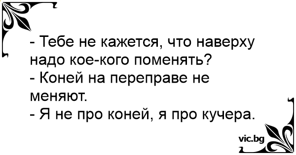 - Тебе не кажется, что наверху надо кое-кого поменять?
