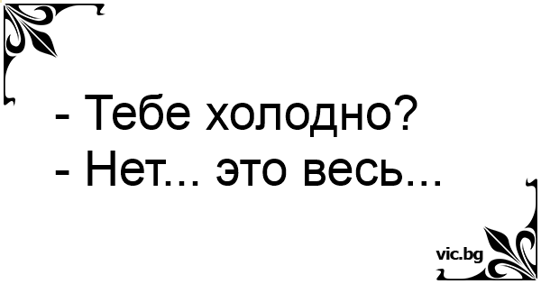 Тя: - Скъпи, студено ли ти е? Той: - Не, това е целият