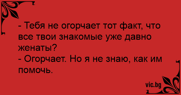 - Тебя не огорчает тот факт, что все твои знакомые уже давно женаты?